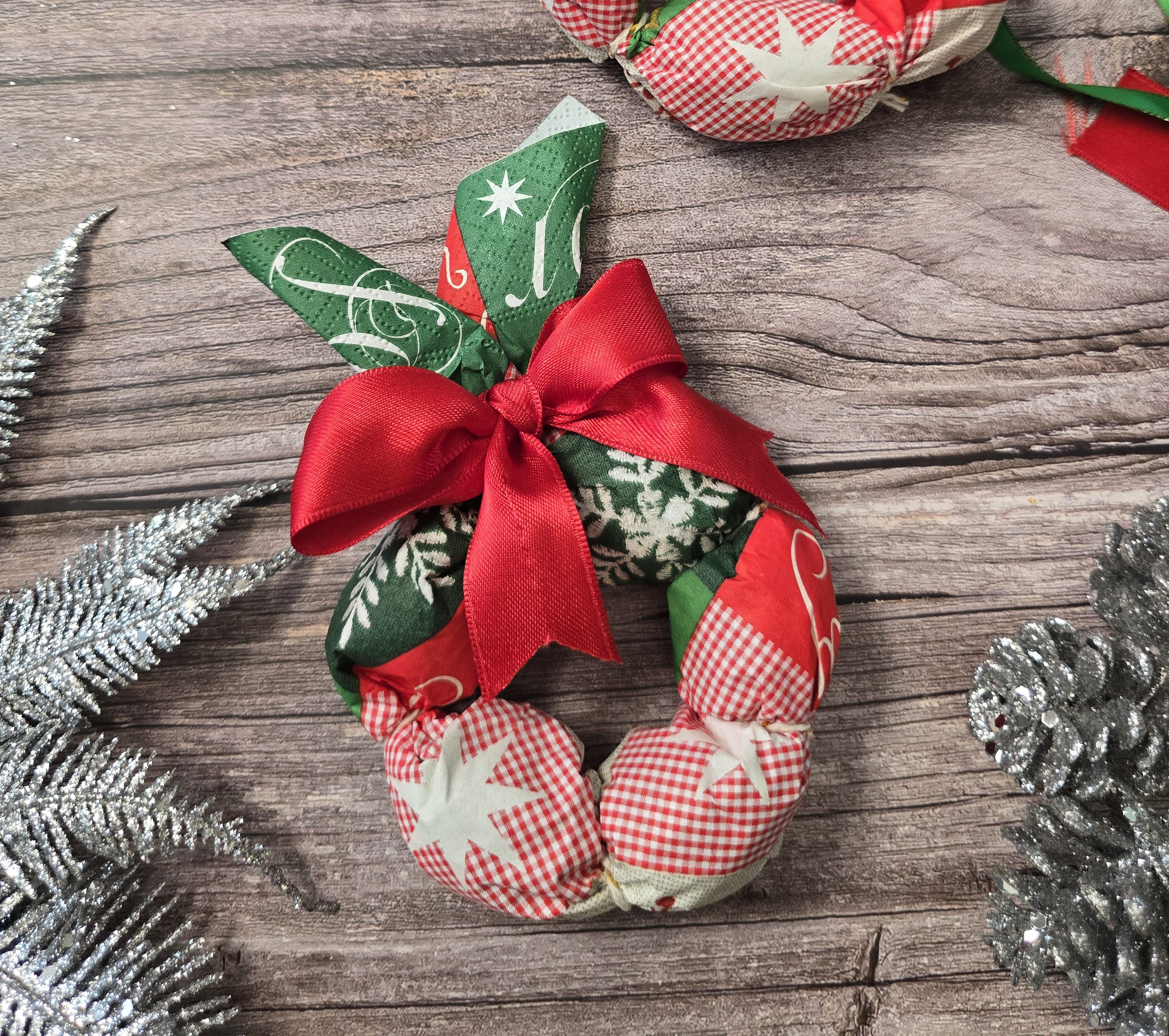 Dieser kleine Weihnachtskranz ist eine der einfachsten, aber schönsten DIY-Ideen für die Adventszeit. Du brauchst dafür nur eine Serviette – und wenn du möchtest, kannst du den Kranz auch aus Stoff serviettenähnlich nachbasteln.