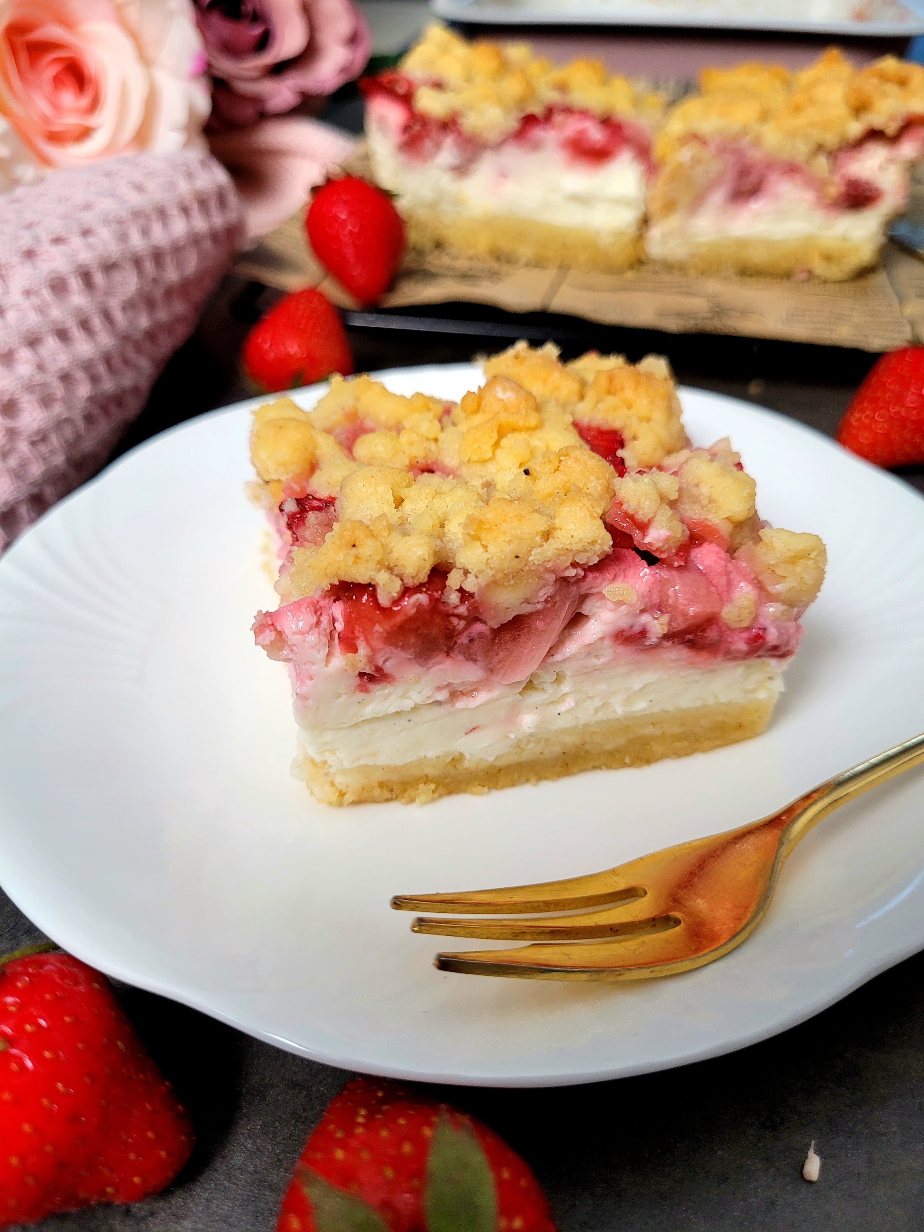 Cremiger Erdbeer-Quark Streuselkuchen