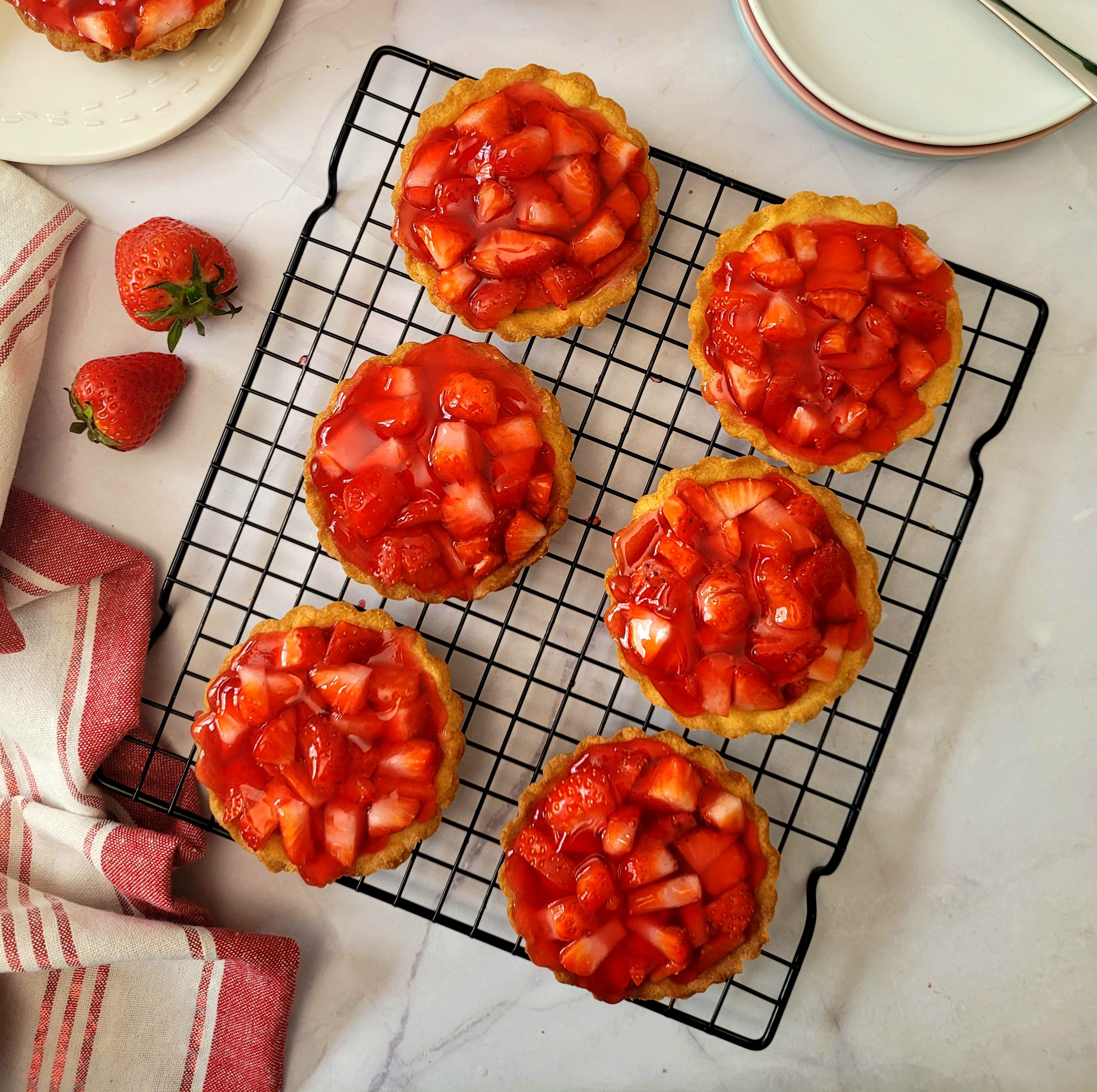 - Stelle die Erdbeer Tartlets bis zum Servieren in den Kühlschrank.